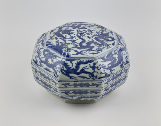A Rare Blue And White Octagonal Box And Cover, Ming Dynasty Wanli Six-Character Mark And Period