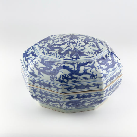 A Rare Blue And White Octagonal Box And Cover, Ming Dynasty Wanli Six-Character Mark And Period