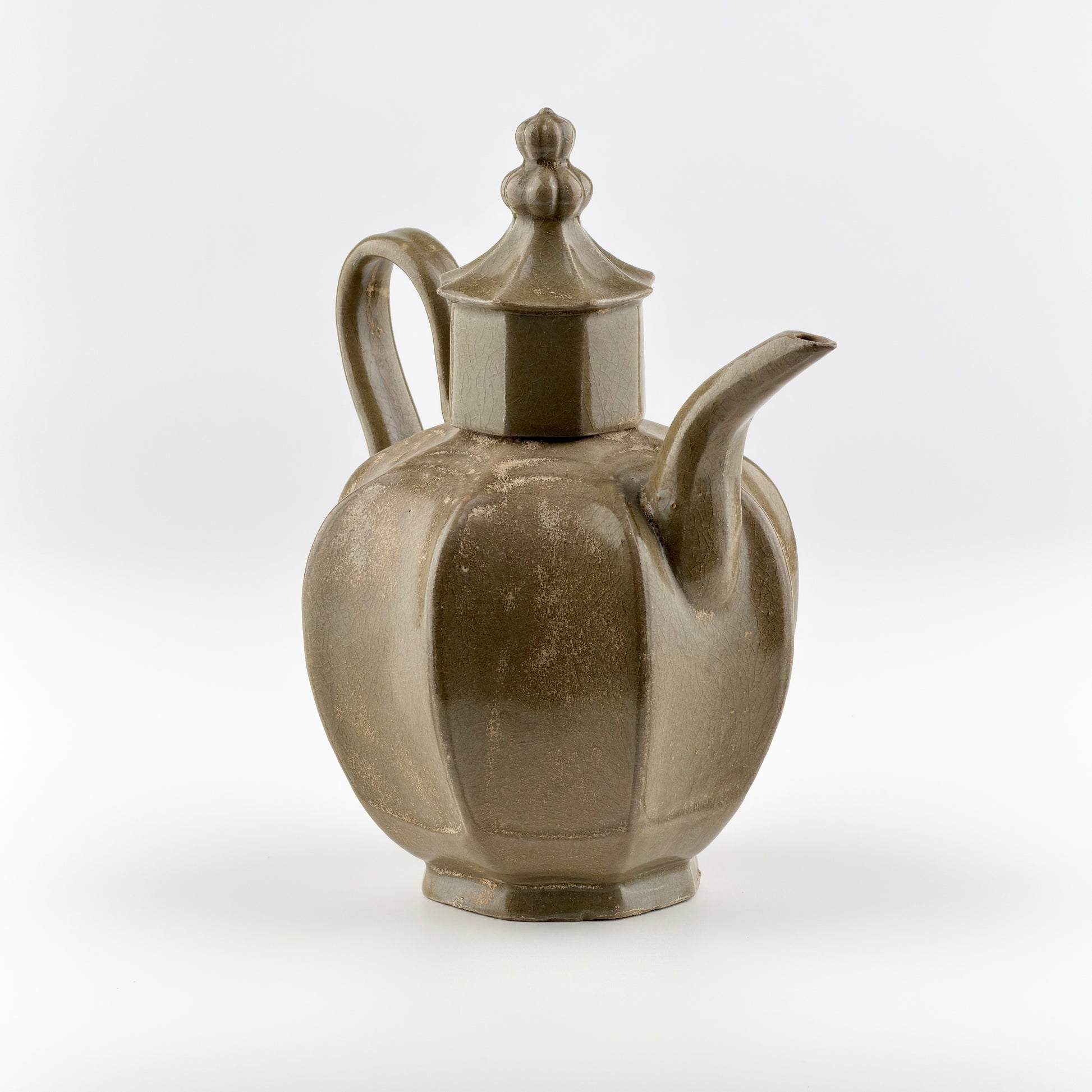 Rare Brownish-Olive Glazed Celadon Octagonal Ewer with Cover, Five Dynasties/Song Dynasty