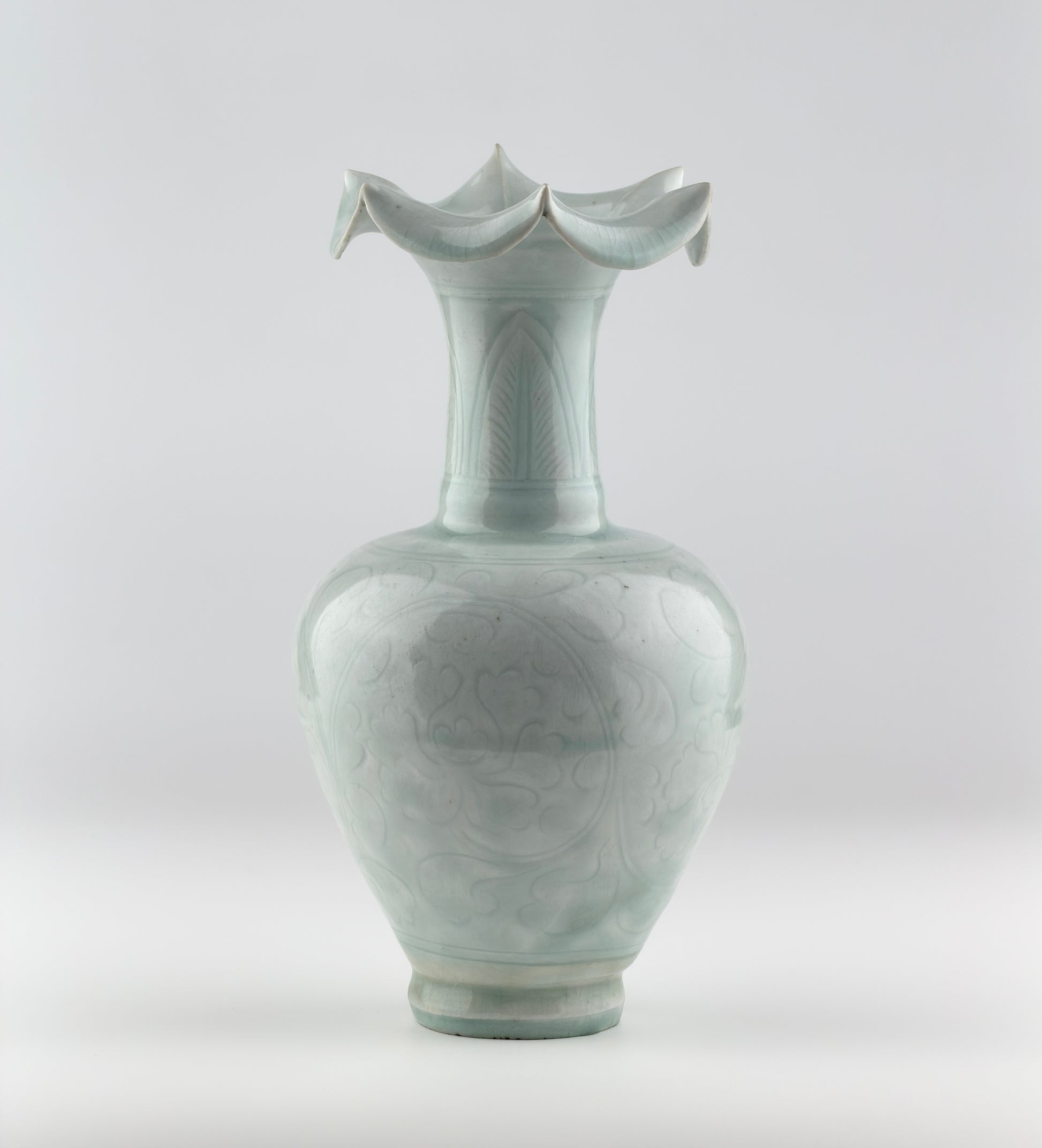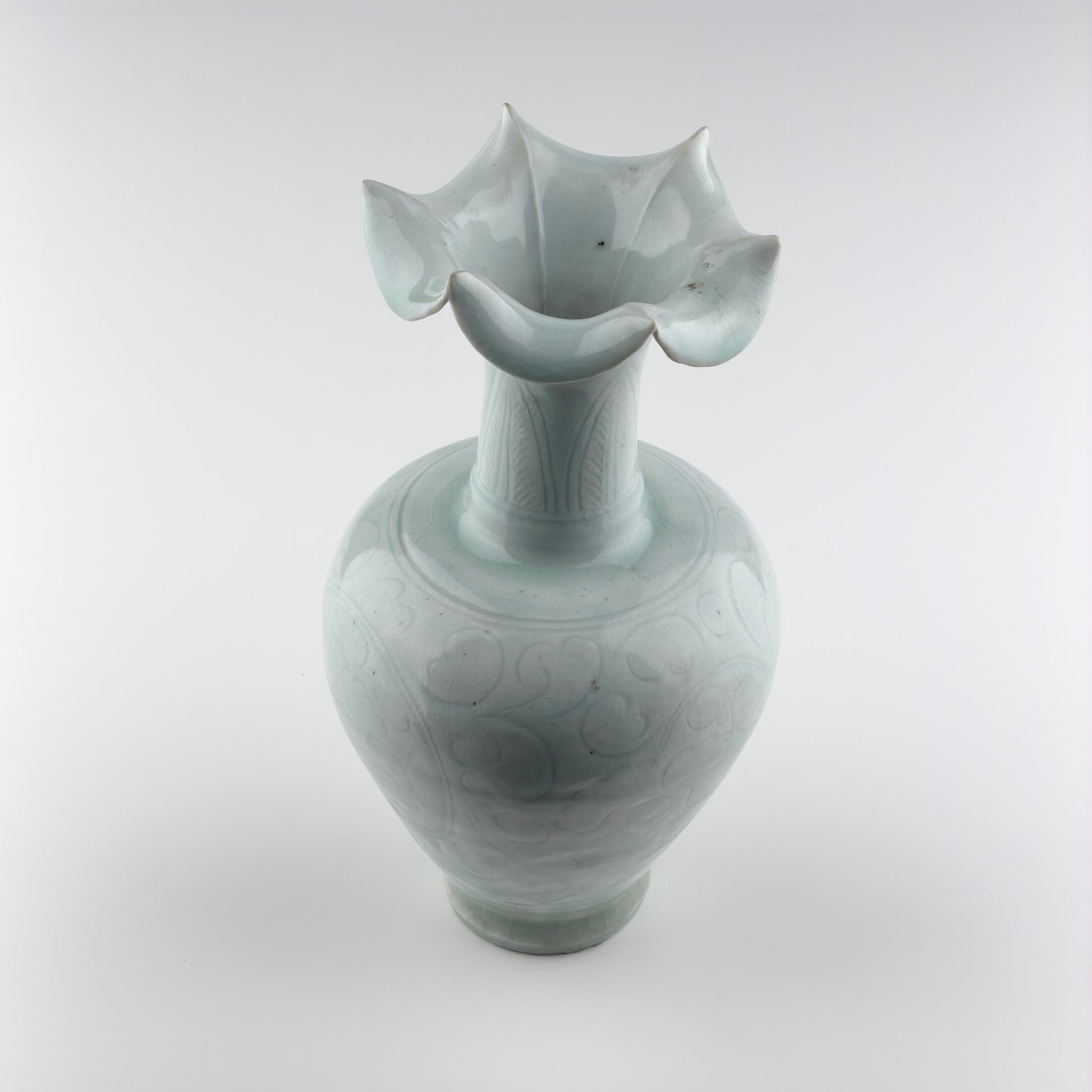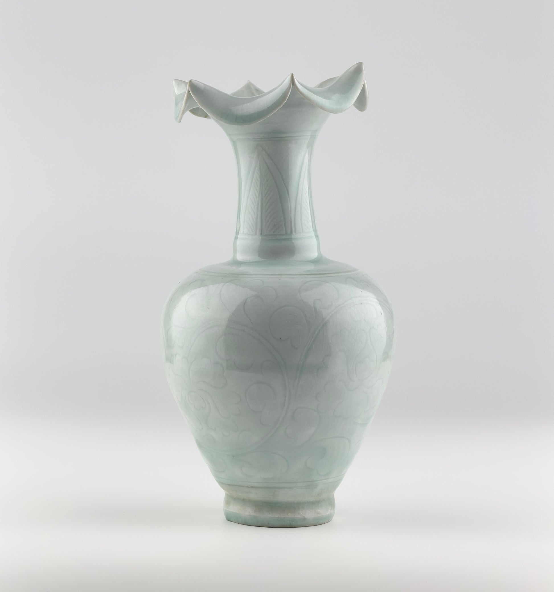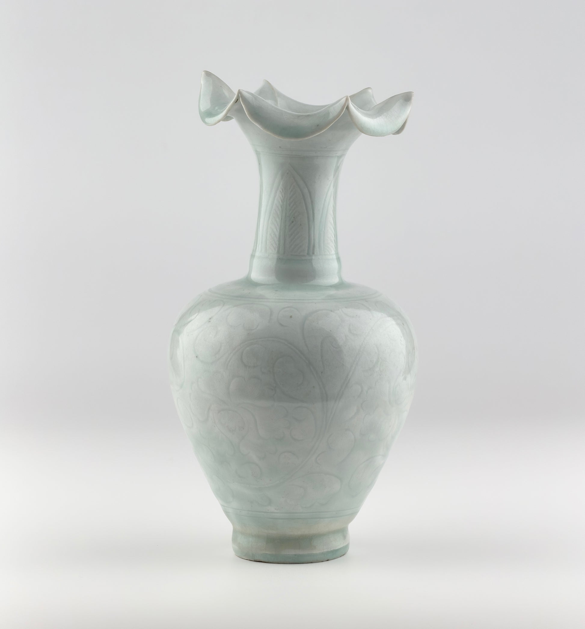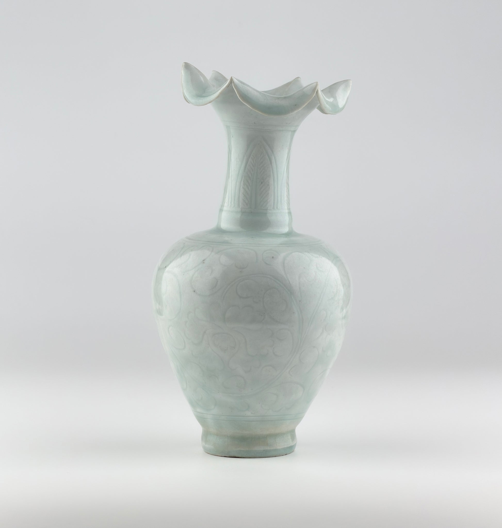 Rare Carved Qingbai 'Chrysanthemum' Vase, Yuan Dynasty(13-14th century)