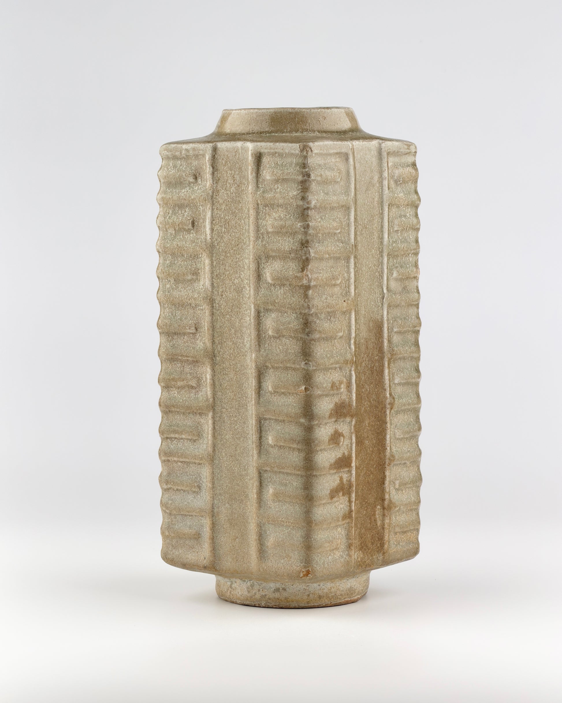 A Rare Yue Celadon Cong-Shaped Vase, Western Jin Dynasty(3-5th C)