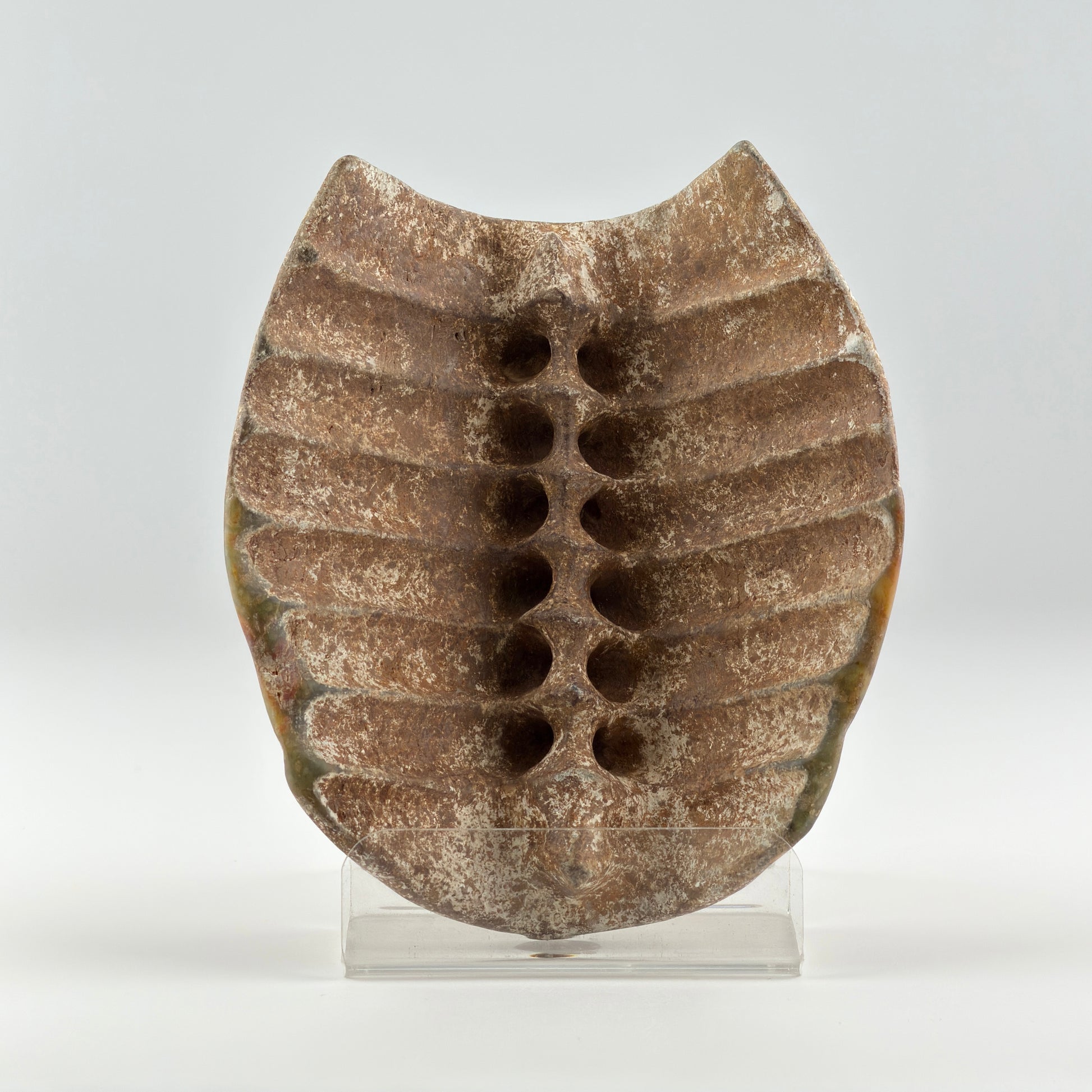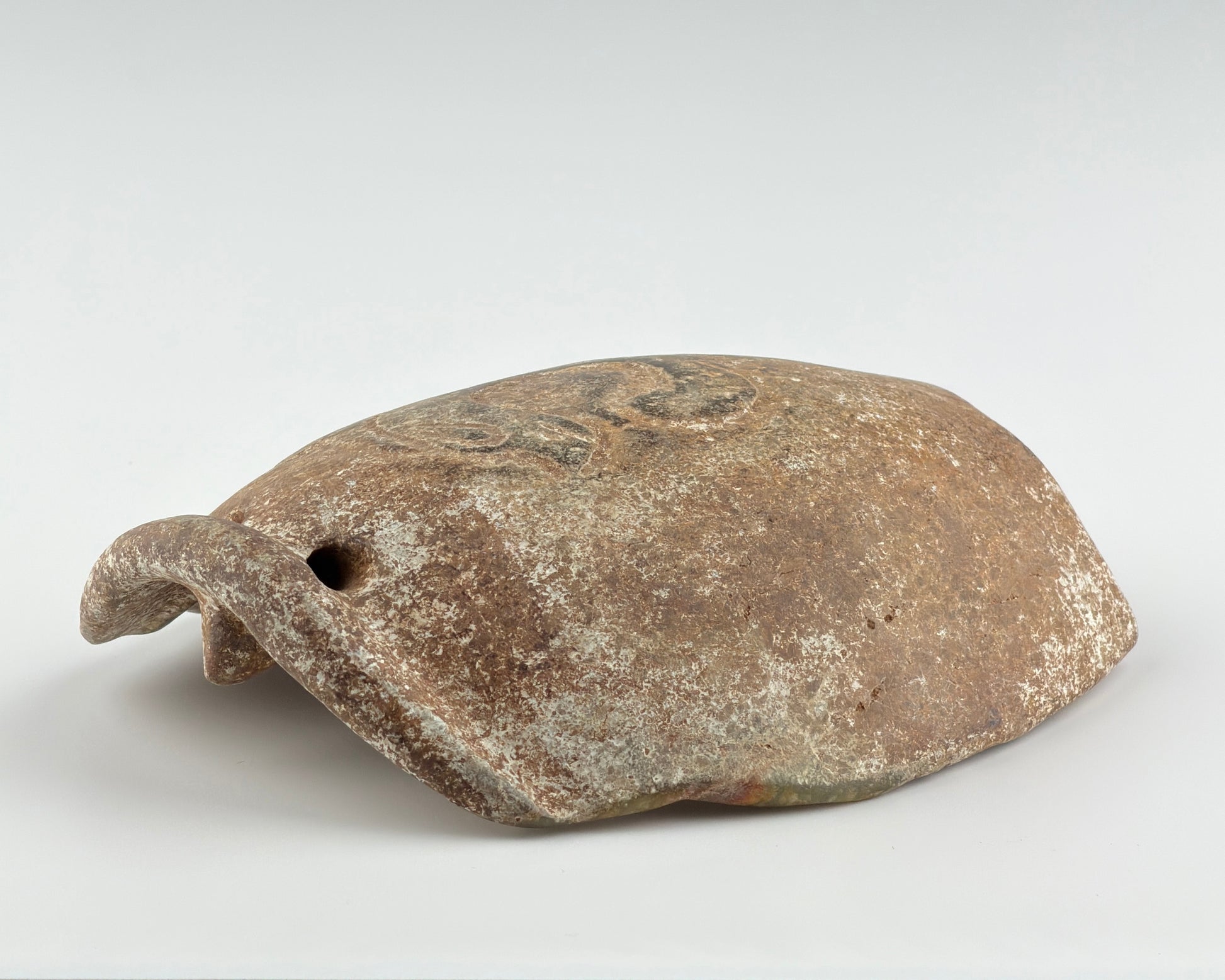 Rare Calcified Jade Carving of 'Tortoise Shell' presumably Neolithic Period, Hongshan Culture
